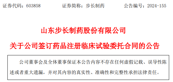 2024 年 12 月 3 日,山东步长制药股份有限公司(以下简称“公司”)与北京卓越未来国际医药科技发展有限公司(以下简称“北京卓越”)签订《参附益心颗粒注册临床试验委托合同》,委托北京卓越完成参附益心颗粒注册临床试验。