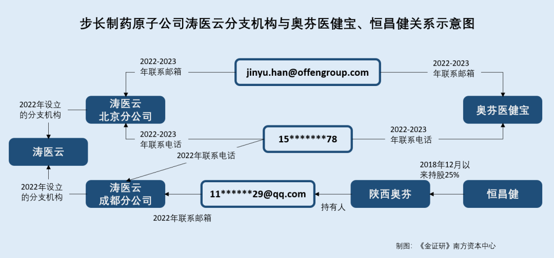 2022-2023年,涛医云北京分公司联系邮箱及联系电话均分别为jinyu.han@offengroup.com、15*******78,与奥芬医健宝同期的联系邮箱及联系电话一致。