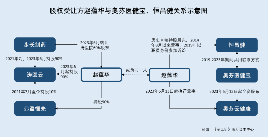上述情形或意味着,若股权受让方赵蕴华,与恒昌健的董事赵蕴华、奥芬医健宝全资持股的奥芬云健康法人及执行董事赵蕴华为同一人,则步长制药原控股子公司涛医云在设立时的少数股东的执行事务合伙人赵蕴华,或系一家被限制高消费企业的职员。