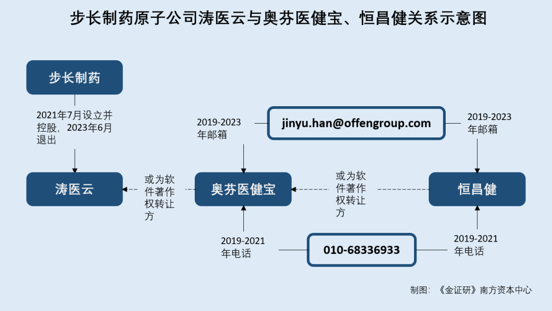 上述股转背后,股权受让方赵蕴华,不仅系原子公司涛云医成立以来背后的股东之一,与奥芬医健宝、恒昌健相关人员的关系或错综复杂。需要先说明的是,2019-2021年,恒昌健与奥芬医健宝共用企业联系方式。其中,涛医云软件著作权系受让而来,且与奥芬医健宝、恒昌健的多项软件著作权名称重叠。此外,赵蕴华与恒昌健董事“同名”,步长制药实控人岳母与奥芬医健宝全资子公司的股东兼董事“同名”,步长制药子公司监事会主席亲属与奥芬医健宝股东“同名”。基于上述种种巧合,倘若不是同名,步长制药实控人岳母和子公司监事亲属,与股权受让方赵蕴华、奥芬医健宝、恒昌健或关系待解。
