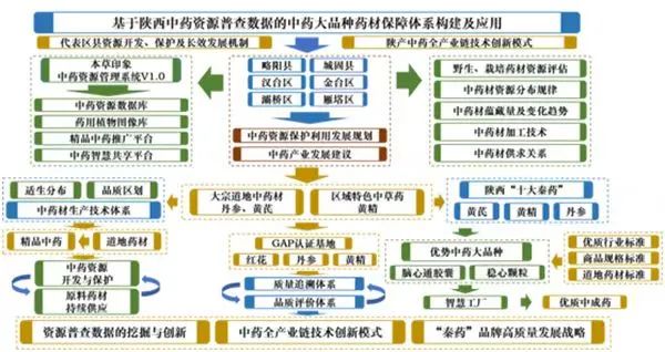 该项目基于第四次全国中药资源普查陕西数据,通过数据挖掘和理论分析,建立中药资源数据库,以形成涵盖县域资源开发、保护及可持续利用的长效发展机制;运用资源普查理论、技术及方法,以秦药黄精、丹参、黄芪等为主要研究对象,探索中药材资源分布规律,践行中药材生态种植理论,创建生态种植技术体系;利用普查传统知识调研数据,优化产地加工炮制及质量评价手段,打造传统经验融合现代科技的药材品质评价体系,建立中药全过程质量追溯体系。构建基于陕西中药资源普查数据的中药大品种药材保障体系。