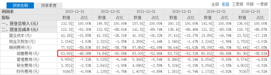 2017年至2023年,公司销售费用分别为82.87亿元、80.36亿元、80.81亿元、83.73亿元、83.00亿元、74.84亿元、63.69亿元,合计549.30亿元。