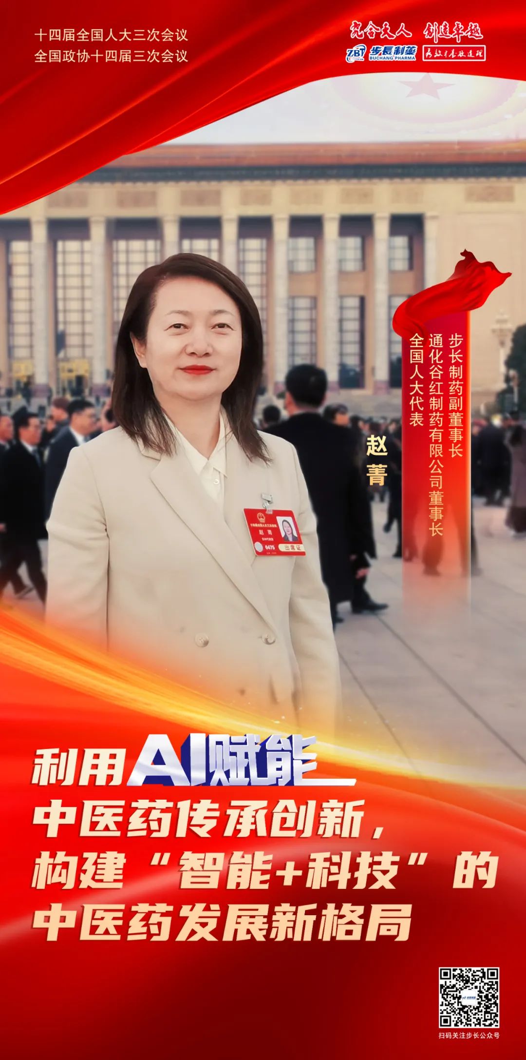 在2025全国两会,全国人大代表、全国工商联医药业商会副会长、步长制药副董事长、通化谷红制药有限公司董事长赵菁提交了《关于利用AI赋能中医药传承创新,构建“智能+科技”中医药发展新格局的议案》、《关于充分发挥人参资源优势,激活人参千亿产业价值的建议》、《关于夯实中医药防治“中国经验”,引领世界传统医药发展的建议》、《关于以新质生产力提高附加值,打造林下参国家品牌的建议》等十个建议。两会代表赵菁在履职过程中积极作为,从多个方面为中医药行业发展和社会进步建言献策。