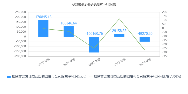 五一假期后首个交易日,A股迎来“开门红”,全市场近5000只个股上涨。普涨行情中,步长制药(603858.SH)股价平收的表现略显突兀。此前,步长制药披露了2024年年报,公司连续四年营收下滑,2024年扣非净利亏损达4.93亿元。