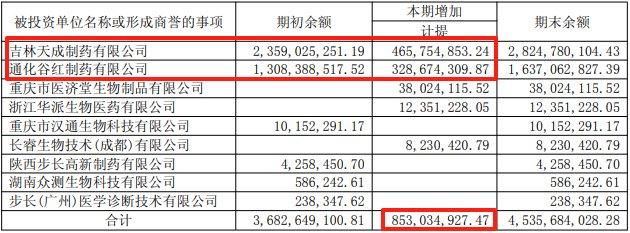 2013年至2015年,步长制药分三次收购通化谷红100%股权,总成本达27.48亿元,确认商誉18.36亿元。此外,公司还通过2012年和2015年的两次收购,取得吉林天成95%股权,总成本35.97亿元,确认商誉31.61亿元。随着并购标的业绩不及预期,公司不得不进行大规模商誉减值,导致利润大幅缩水。