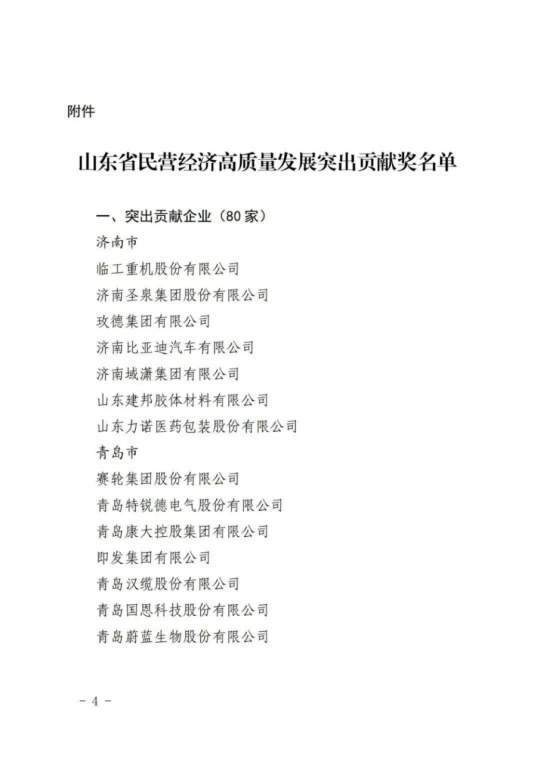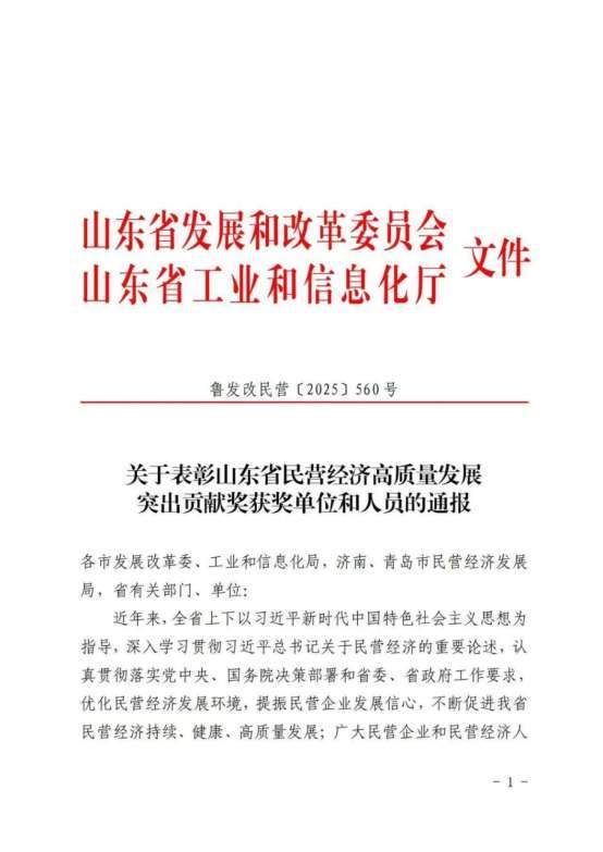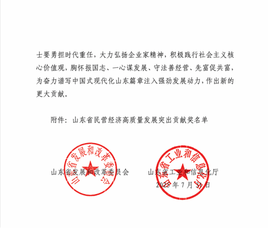 近日,山东省发展改革委、省工业和信息化厅公布山东省民营经济高质量发展突出贡献奖名单,以激发民营企业发展活力,提振民营企业发展信心,推动全省民营经济高质量发展再上新台阶。