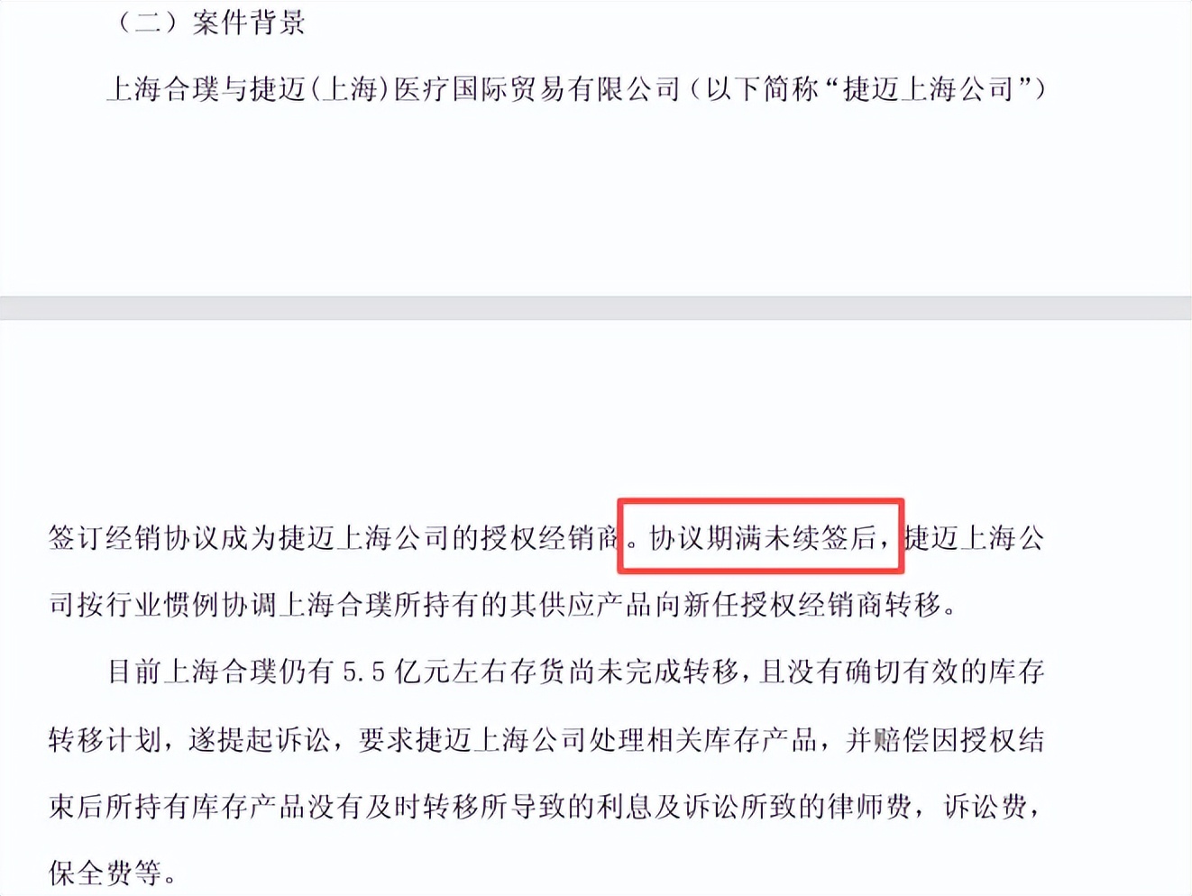这场风波的核心,是一份经销协议到期后引发的库存纠纷:作为上海捷迈骨科耗材的授权经销商,上海合璞在协议终止后,未能完成价值约5.5亿元库存向新任经销商的转移,最终导致了存货积压的难题。