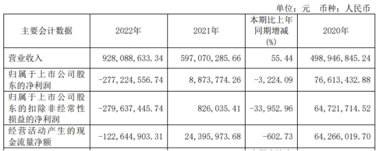 松炀资源(603863.SH)近日披露了2022年年度报告。2022年,松炀资源营业收入9.28亿元,同比增长55.44%;归属于上市公司股东的净利润-2.77亿元,同比下降3224.09%;归属于上市公司股东的扣除非经常性损益的净利润-2.80亿元,同比下降33952.96%;经营活动产生的现金流量净额-1.23亿元,同比下降602.73%。