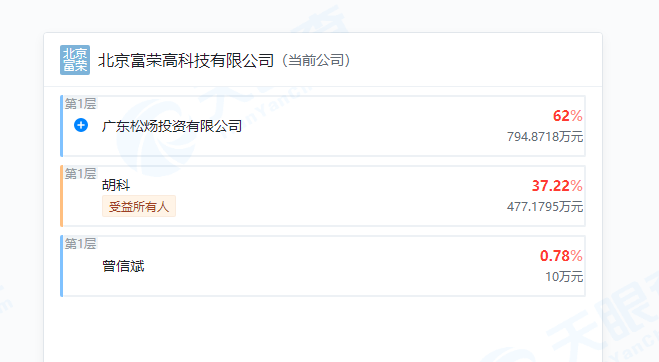 信息显示,2023年10月18日,富荣高科发生投资人变更,松炀投资、胡科、曾信斌对应认缴出资额变为794.87万元、477.18万元和10万元。