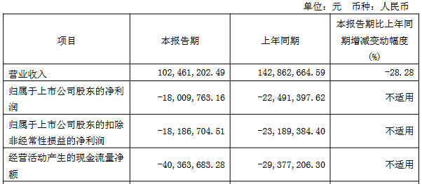 2025年1-3月,公司实现营业收入1.02亿元,同比下降28.28%;归属于上市公司股东的净利润为-1,800.98万元,上年同期为-2,249.14万元;归属于上市公司股东的扣除非经常性损益的净利润为-1,818.67万元,上年同期为-2,318.94万元;经营活动产生的现金流量净额为-4,036.37万元,上年同期为-2,937.72万元。