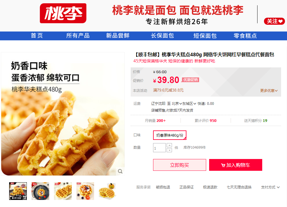 另在新品销售方面,桃李面包也面临着较大压力。桃李面包官方旗舰店显示,桃李面包新品华夫糕点、桃李纯蛋糕的月销售量分别是200+、100+。