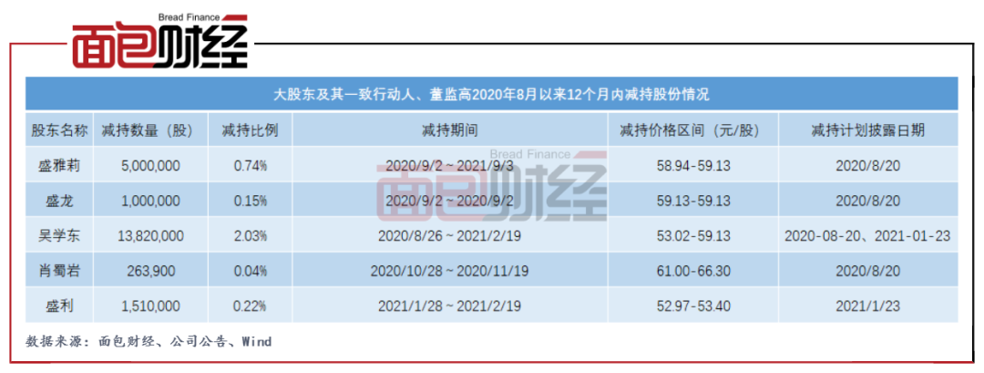 除了此次减持,桃李面包大股东及其一致行动人、董监高自2020年8月以来的12个月内合计减持2159.39万股。按照减持价格区间中值测算,这些股东在此期间累计套现超过12亿元。