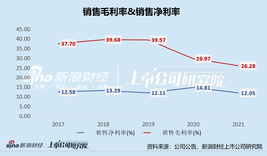 多方因素影响下,公司2021年销售毛利率、销售净利率均不同程度下挫。