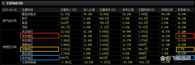 查看桃李面包的营业构成发现,或许净利润下滑的原因不仅仅是由于原材料价格上涨,其北强南弱的区域特征十分明显。