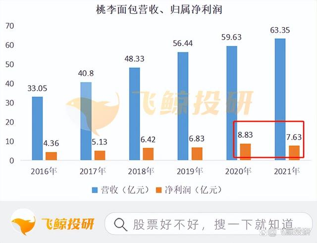 整体来看,2016-2021年,桃李面包的营业收入在持续增长,可是净利润却的增长却跟不上营收的不乏。2021年净利润只有7.63亿元,比2020年减少了1.20亿元。