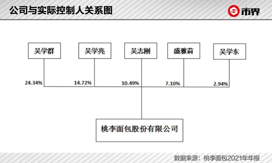 桃李面包最终实控人为吴氏家族及其亲属,创始人吴志刚的三个儿子、夫人盛雅莉等亲属也参与公司经营。