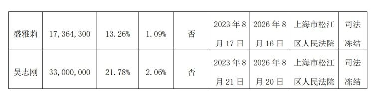 8月22日,桃李面包公告透露,公司控股股东及实际控制人盛雅莉、吴志刚分别持有的1736.43万股(占其所持股份比例的13.26%,占公司总股本的1.09%)、3300万股(占其所持股份比例的21.78%,占公司总股本的2.06%)股份被司法冻结。公告发布后,8月23日,桃李面包盘中一度跌停。