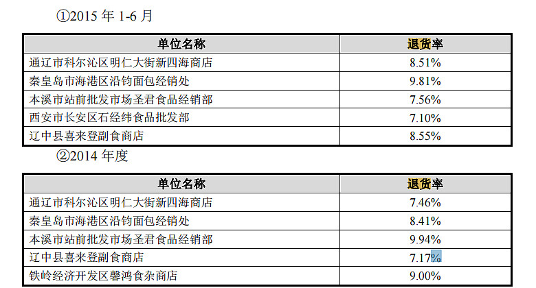 短保面包保质期在 3-6 天,每天的退货率在4%~10%之间不等,与节假日、周末有关,从招股书看经销商的退货率在7%~10%之间不等。按照最新会计准则,退货是要同时冲减营业收入和营业成本的,所以退货对毛利率是没有直接影响的,但是有间接影响。