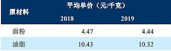 根据中诚信的债券评级跟踪报告,桃李面包在2018年~2019年的原材料采购价格如下。