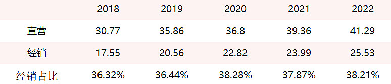 桃李的经销收入占比一般保持在36%~38%之间,没有太大的波动。主要以直营为主。