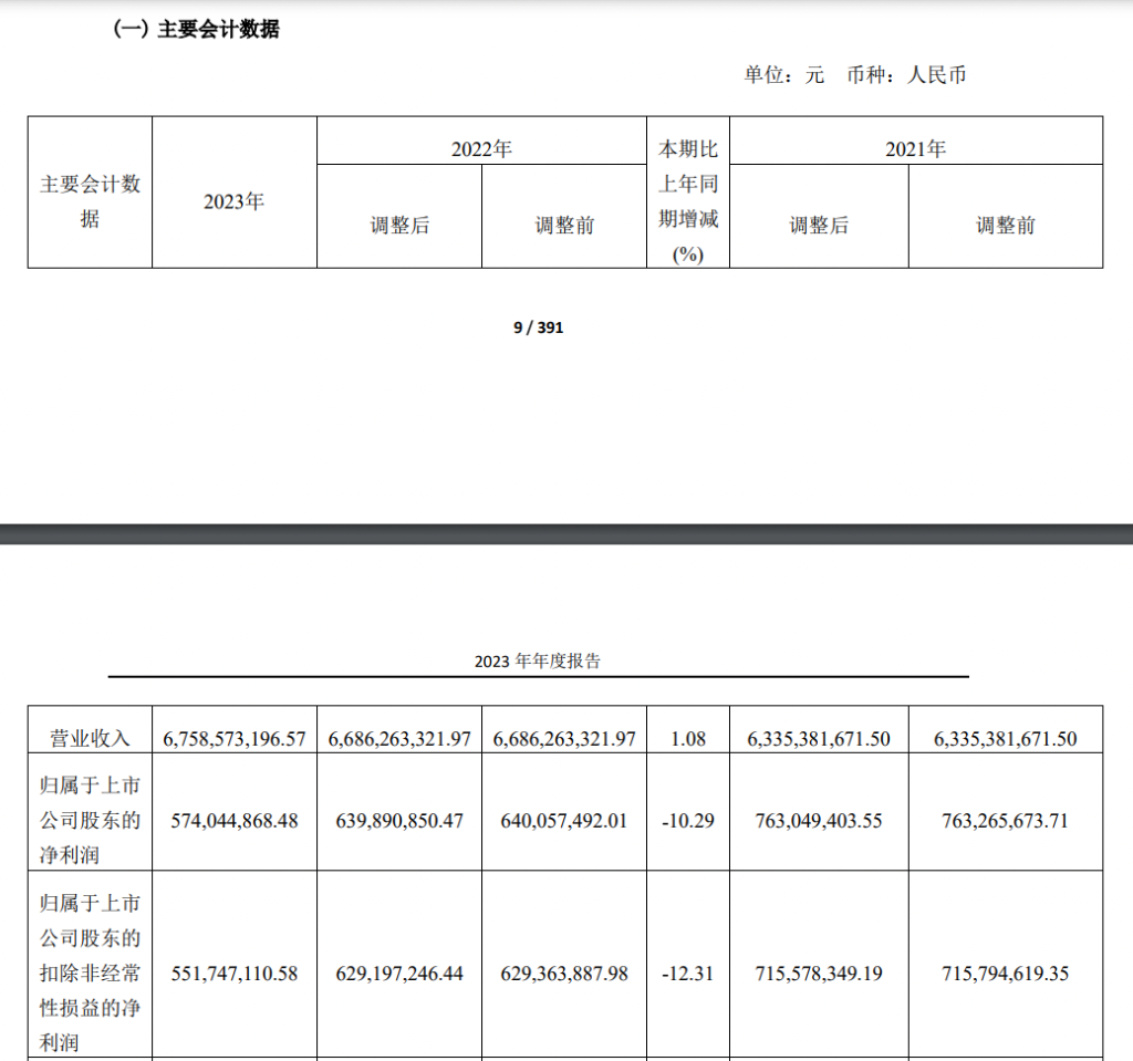 年报显示,报告期实现营业收入67.59亿元,同比增长1.08%;实现归母净利润5.74亿元,同比下滑10.29%;扣非后归母净利润5.52亿元,同比下滑12.31%。