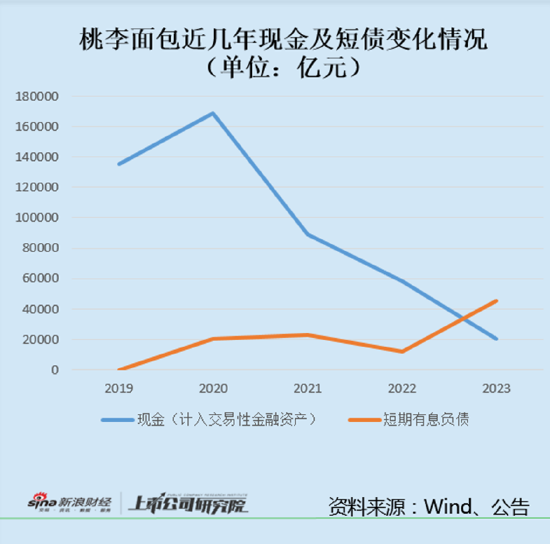 净利润下滑的同时,另一个值得关注的地方是公司账面现金开始低于短债。即使算上交易性金融资产,桃李面包2023年现金也仅为2.04亿元,而公司短期有息负债大增至4.52亿元,现金短债比低至0.45,已经面临较大的偿债压力。