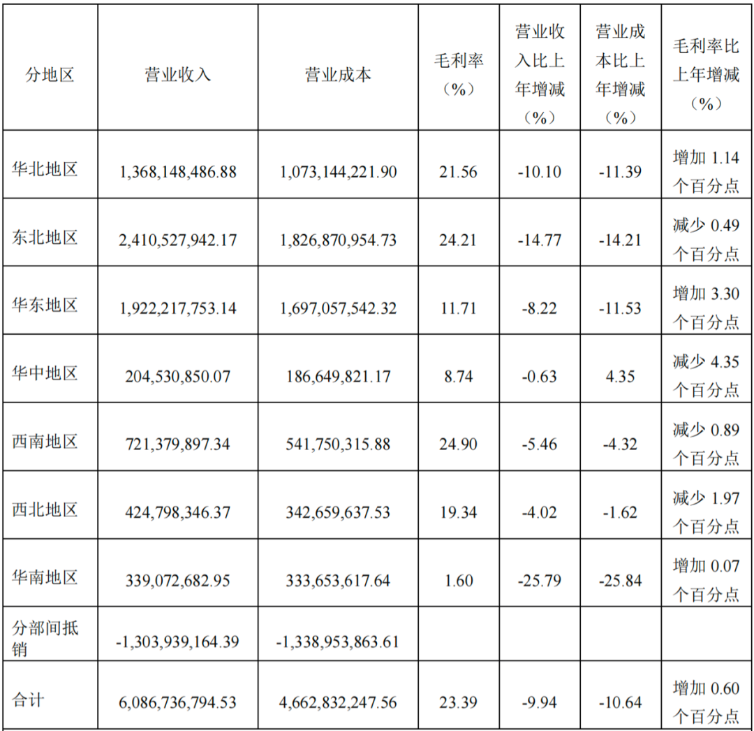 分区域来看,桃李面包在华北、东北、华东、华中、西南、西北、华南等七个区域的营业收入均出现了不同程度的下滑。其中,华南区域下滑幅度达到25.79%,另外,其大本营区域东北和华北也均出现了双位数下滑,尤其是东北地区一年缩水了3个多亿。