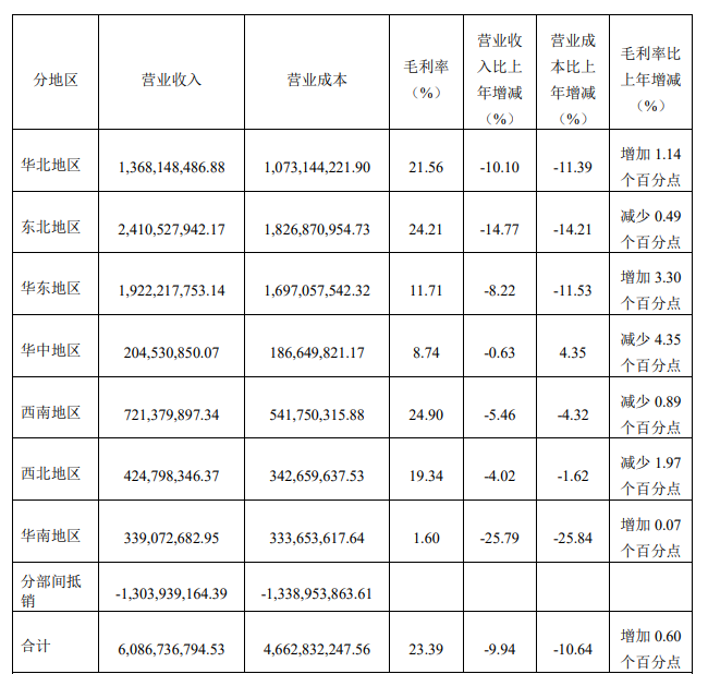 按区域市场来看,桃李面包在各地区市场也都录得收入的下降,其中华南地区下降速度最高为25.79%,其次是桃李面包的“大本营”东北市场,较同期下降了14.77%,接着是华北和华东地区,分别下降了10.10%和8.22%。