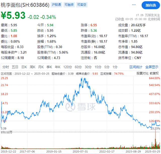 这家曾以“短保面包”横扫全国、市值一度突破450亿元的“面包第一股”,开始失宠了。