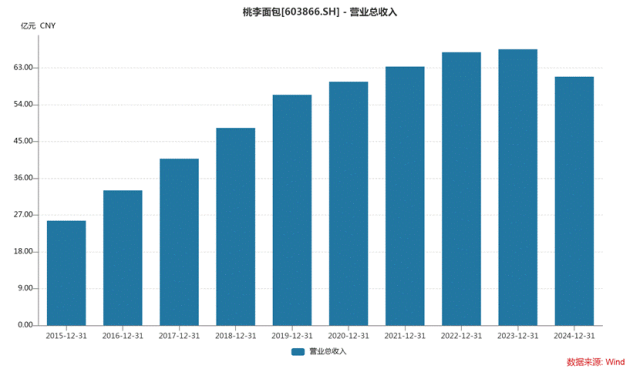 日前,桃李面包交出上市以来最惨淡的成绩单,2024年营收60.87亿元,同比下滑9.93%;归母净利润5.22亿元,同比下降9.05%。这是其自2015年登陆A股以来首次出现营收、净利润“双降”的局面。