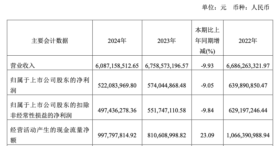 近日,桃李面包公布2024年年报,公司营业收入为60.9亿元,同比下降9.9%;归母净利润为5.22亿元,同比下降9.1%;扣非归母净利润为4.97亿元,同比下降9.8%;经营现金流净额为9.98亿元,同比增长23.1%。