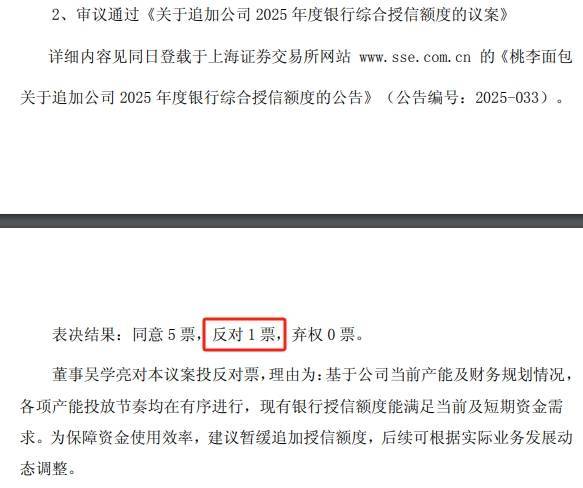 投出反对票的正是董事长吴学亮。他提出,基于公司目前的生产能力和财务规划,现有的银行授信额度已能满足当前的资金需求以及短期内的财务规划。吴学亮认为,为了提高资金的使用效率,应暂缓追加授信额度,并根据公司业务的实际发展情况动态调整。