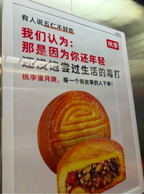 近日,以“面包第一股”身份立足A股市场的桃李面包,因一则电梯广告引发广泛争议。广告中,桃李面包为其五仁月饼设计的宣传语——“有人说五仁不好吃,我们认为:那是因为你还年轻,还没饱尝过生活的毒打”,在社交平台迅速传播后,遭到大量网友批评。