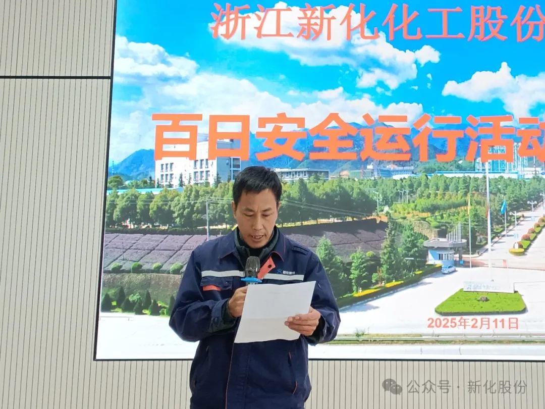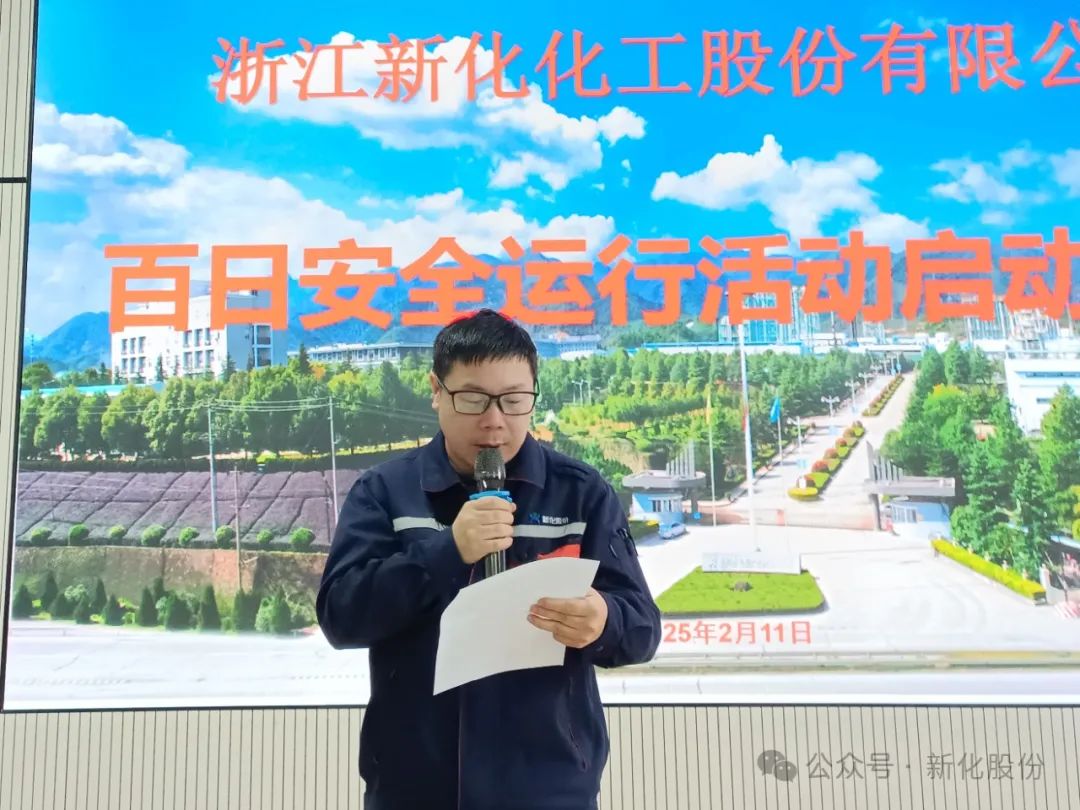 2月11日,新化股份启动“百日安全运行”专项行动并举行“安全生产大讲堂”开班仪式。党委书记胡健、董事长应思斌,全体管理干部、安全员及部分职工代表等参会。会议由副总经理王卫明主持。