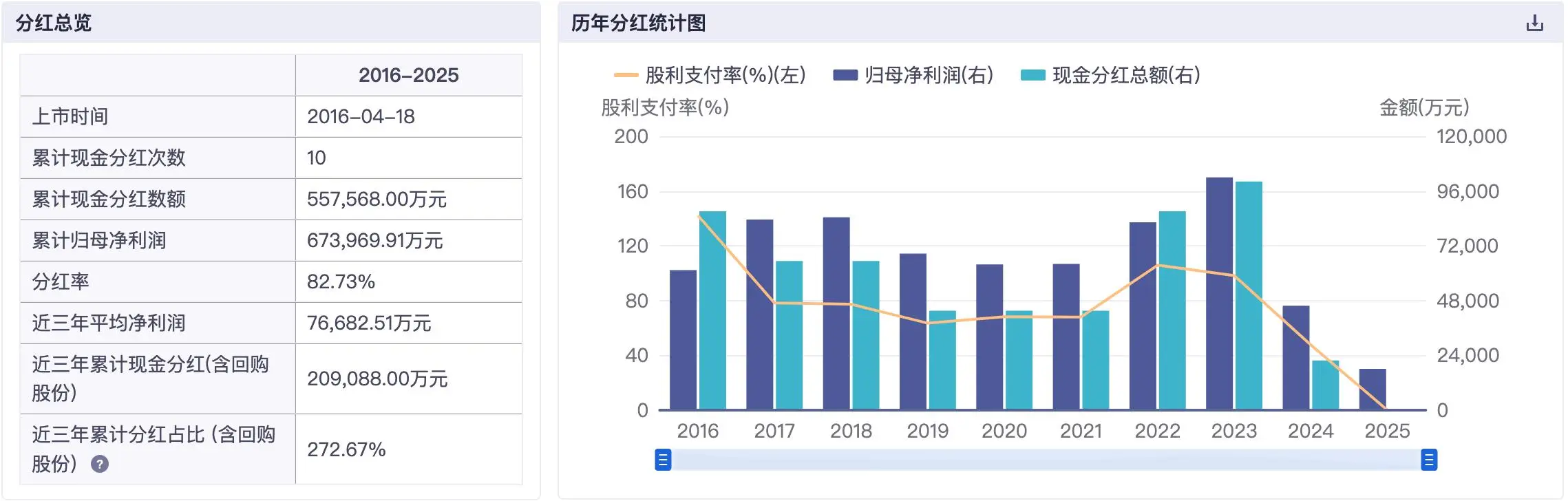 数据显示,飞科电器已累计分红10次,累计现金分红数额为55.76亿元,而归母净利累计为67.4亿元,分红率为82.73%。