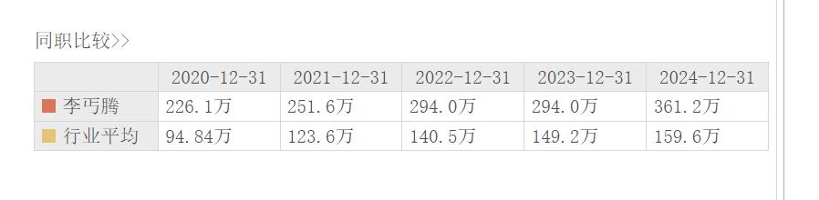 而在这个业绩背景下,公司董事长李丐腾去年涨薪了。据悉,2020年,他的年薪达到226.1万,到2023年上涨至294.0万,到了2024年他的年薪再次涨至361.2万。