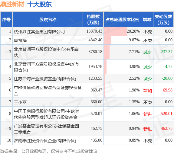 根据鼎胜新材2023年一季报公布的十大股东详情如下:
