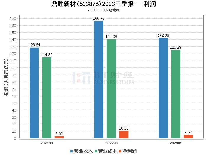 其次,从利润方面看,鼎胜新材2023年三季度的营业收入为142.38亿元,相比上年同期的166.45亿元下降了14.46%。营业利润为5.66亿元,相比上年同期的12.16亿元下降了53.45%。净利润为4.67亿元,相比上年同期的10.35亿元下降了54.92%。毛利率为12%,相比上年同期的15.66%有所下降。净利率为3.28%,相比上年同期的6.22%也有所下降。这些数据都反映出公司在利润方面面临一定的挑战。