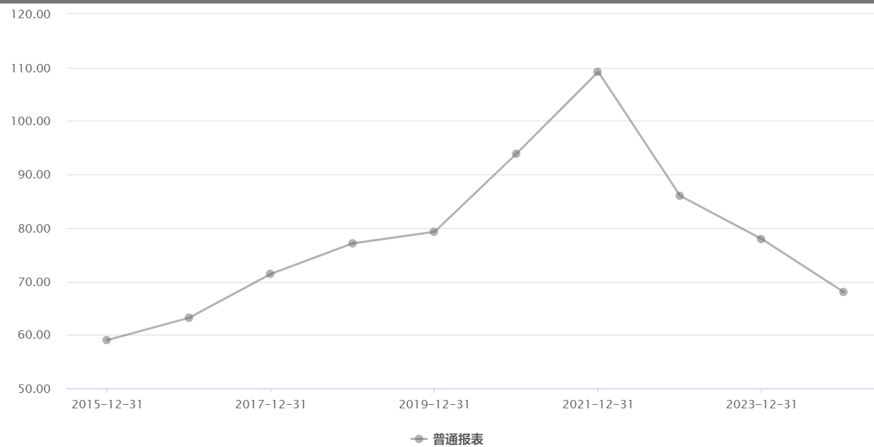 从下图可以看出,太平鸟连续3年收入下滑,面临较大的业绩压力。2022年,太平鸟营收和归母净利润同比分别减少21.24%、72.73%,扣非净利润出现上市以来首次年度亏损,为-0.27亿元。2023年,太平鸟开启降本控费的“改革元年”,虽利润大幅增长,但同期营收却同比下滑9.41%。到2024年,太平鸟营收净利润再度双降,实现营收68.02亿元,同比下降12.70%,净利润2.58亿元,同比下降38.75%。