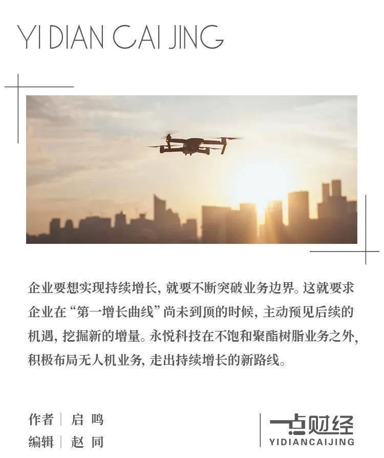 透过财报可以发现,永悦科技的不饱和聚酯树脂业务稳步增长,无人机业务更是取得强劲的增长。可以说,在其突破边界的征程上: