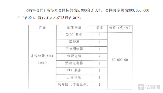 根据披露信息,永悦智能拟向平舆畅达销售5000台无人机,拟交易的无人机型号为永悦智能X40C(40L),每台单价6万元,交易金额为3亿元。对于去年营收不到3亿的永悦科技来说,这笔大单的重要性不言自明。