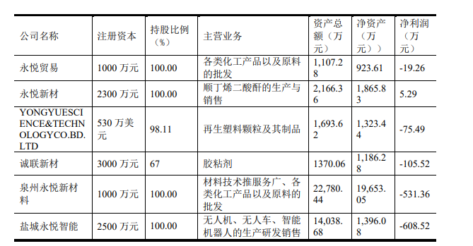 据了解,永悦科技成立于2011年,2017年上市,早年专注于不饱和聚酯树脂为主的合成树脂的研发、生产和销售。2022年初正式涉足智能无人飞行器制造行业。彼时永悦科技设立全资子公司永悦智能,注册资本2500万元,主要从事无人机、无人车、智能机器人的生产研发销售。