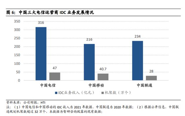 我国 IDC 市场主要由电信运营商主导,形成了基础电信运营商及众多第三方 IDC 厂商共同参与的市场格局。基础电信运营商的数据中心,很大一部分作为保障信息通信传输和业务自用,市场商用部分的客户群体较为分散。而第三方数据中心运营商经过多年深耕,业务高速发展,主要承接核心城市的数据中心需求,如互联网、金融、政务客户需求等,大多在需求潜力较大的一线城市布局。