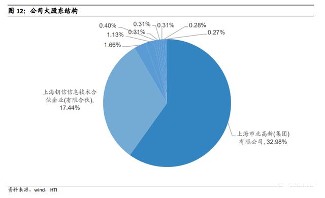 公司控股股东为上海市北高新有限公司,该公司为上海市静安区国资委 100%持股。二股东为上海钥信,是曾犁的控股企业。目前公司前十大股东共计持股 55%。