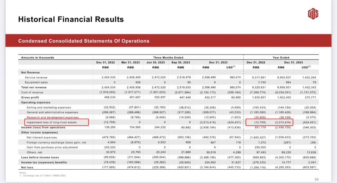 据万国数据年报所披露,虽然其运营面积和客户签约面积均同比增长,但长期资产减值(impairment loss of long lived assets)所带来的大幅损失(由2022年的0.13亿元升至2023年的30.13亿元)是其亏损的主要原因。