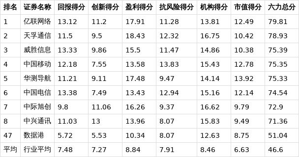 从所属行业角度来看,在申万一级通信行业的131家上市公司中,数据港位列行业第47位,行业平均分为46.6分,显示出公司在行业内的领先地位。