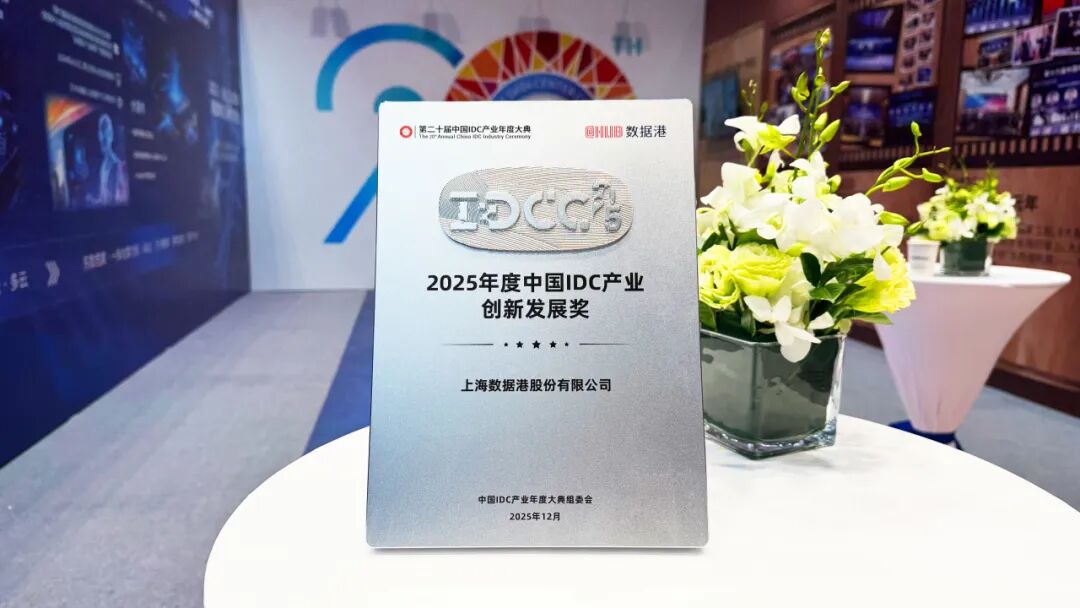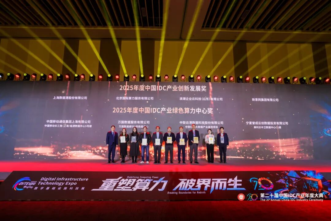 在大会的颁奖环节,数据港凭借上述创新实践及绿色发展成果,历经申报审核、答辩、专家评审等多轮评选,成功摘得“2025年度中国IDC产业创新发展奖”。该奖项不仅彰显了数据港在IDC产业领域的深厚积淀与创新活力,更体现了业界对公司在技术突破、绿色转型及产业赋能方面突出贡献的高度认可。