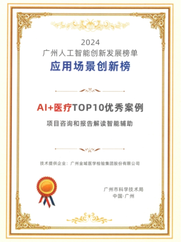 凭借在“医检+AI”领域的创新实践,金域医学上榜“最具市场价值企业榜”,金域医学“项目咨询和报告解读智能辅助”同时入选“应用场景创新榜AI+医疗TOP10优秀案例”。
