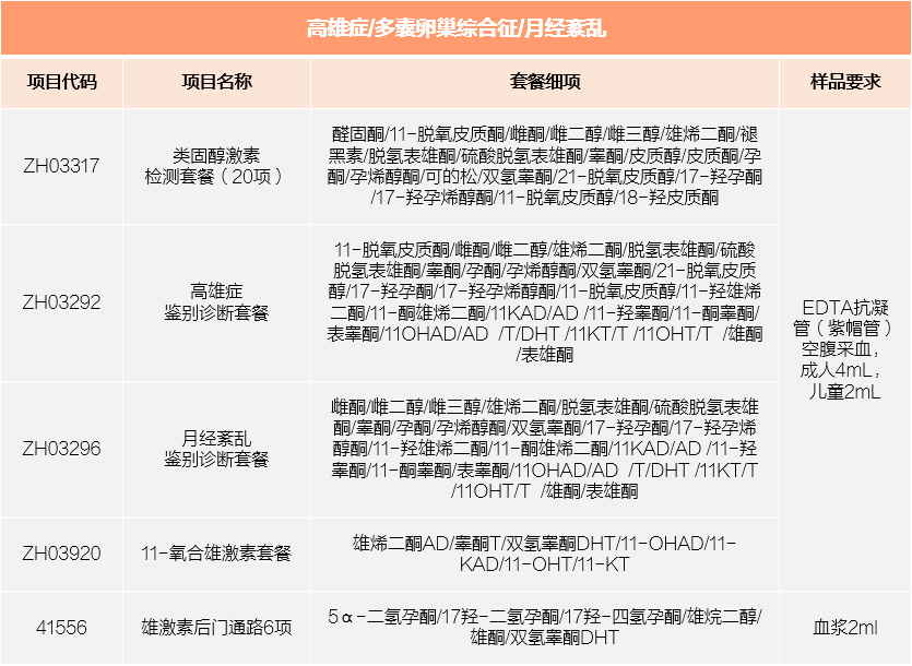 金域医学高雄症/多囊卵巢综合征/月经紊乱相关激素检测项目