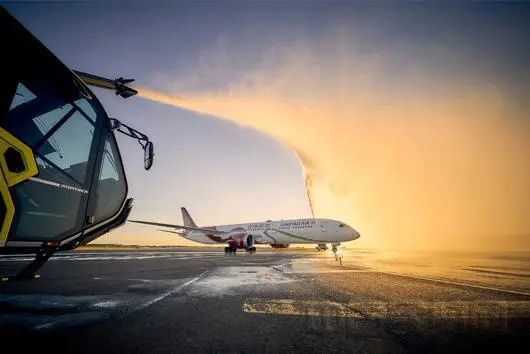 吉祥航空“上海—赫尔辛基”首航航班飞抵赫尔辛基,受到当地水门欢迎